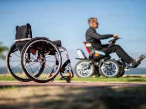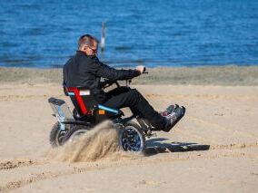 Der „ZOOM“ ist ein elektrischer Geländerollstuhl mit einem permanenten 4-Rad-Antrieb. Er wurde speziell entwickelt, um sowohl auf schwierigem Gelände als auch in der Stadt mobil zu sein. Ein Drehsitz erleichtert den Einstieg und anhand eines Motorradlenkers mit Drehgriffen ist eine leichte Bedienung gegeben.