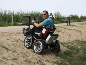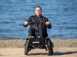 Verstellbare Beinstützen und Lenker machen eine individuelle Einstellung auf jede Personengröße möglich. Aufgrund seiner dicken Profilreifen, seinem elektrischen Vierradantrieb und einem flexiblen Stahlgestell fährt er über jeden Untergrund, wie zum Beispiel Sand, Unebenheiten, Wiese, Waldwege etc. Er besitzt dabei eine gute Bodenhaftung und die Bewältigung von Steigungen ist dabei auch kein Problem. Bei einer Höchstgeschwindigkeit von bis zu 15 km/h und einer Reichweite von 30 km ist auch eine Fahrradbegleitung zur Umrundung des Dümmer Sees möglich.