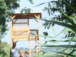 Zu den vier Aussichtstürmen rund um den Dümmer wurde im Jahr 2018 ein weiterer Turm geschaffen. Er steht direkt an der Wasserkante und bietet einen schönen Blick auf den See. Von hier aus ergeben sich neue Einblicke in die Nordbucht, die zum Naturschutzgebiet Dümmer zählt.